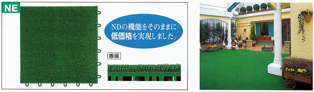 | ◎他では、あまりない、人工芝に架台をつけたジョイントタイプで施工もカンタン ◎優れた透水 排水機能を実現しました |